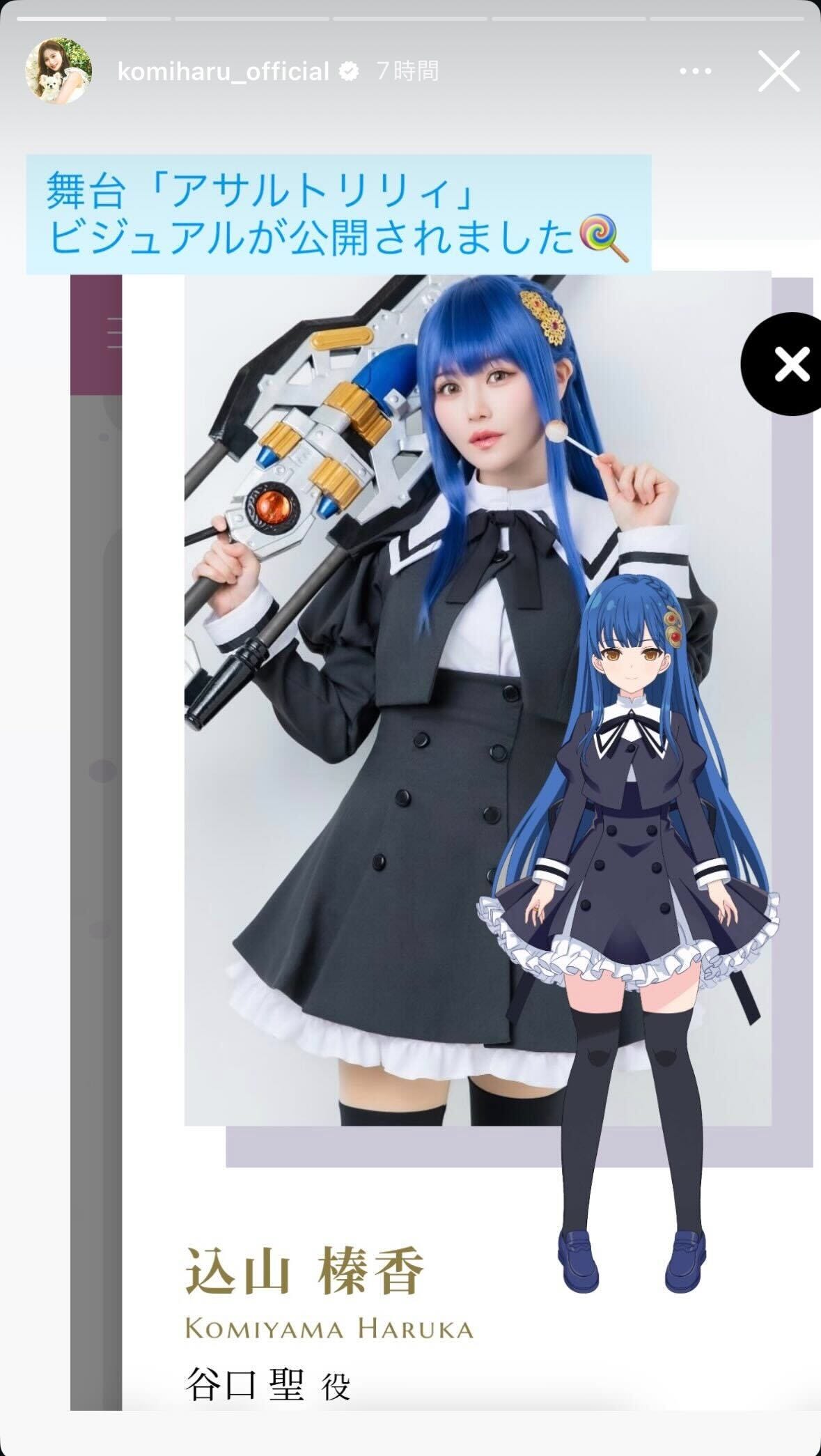 元AKB48の込山榛香が4月2日、自身のInstagramを更新。出演する舞台「アサルトリリィ・シュ...