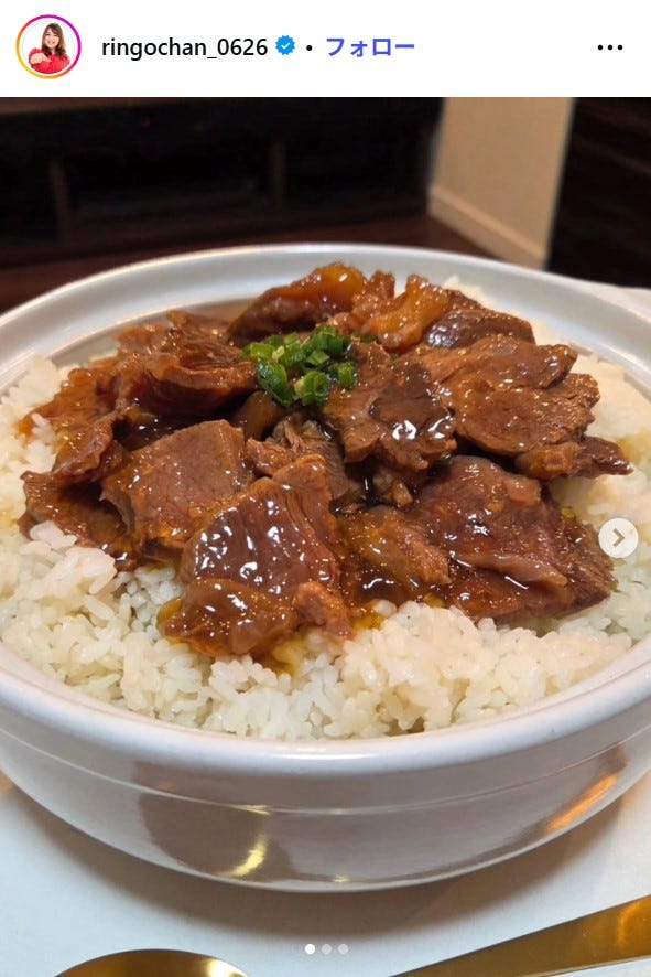 ものまねタレントのりんごちゃんが4月2日、自身のInstagramを更新。3合の米に8缶の缶詰を乗せ...