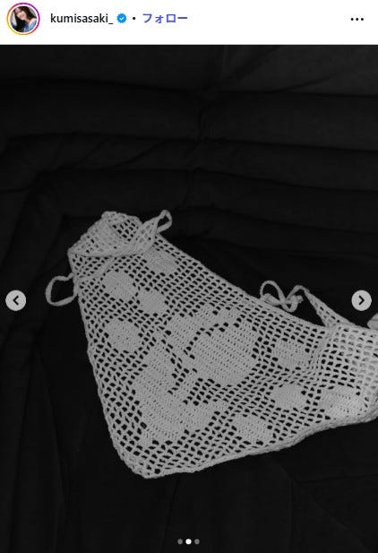 元日向坂46の佐々木久美が4月2日、自身のInstagramを更新。手編み作品を披露し、反響を呼んで...
