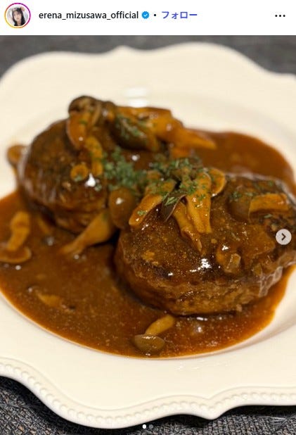 水沢エレナ、100回近く作ったこだわり煮込みハンバーグ公開「隠し味に驚き」「ポイントがすごく参考になる」