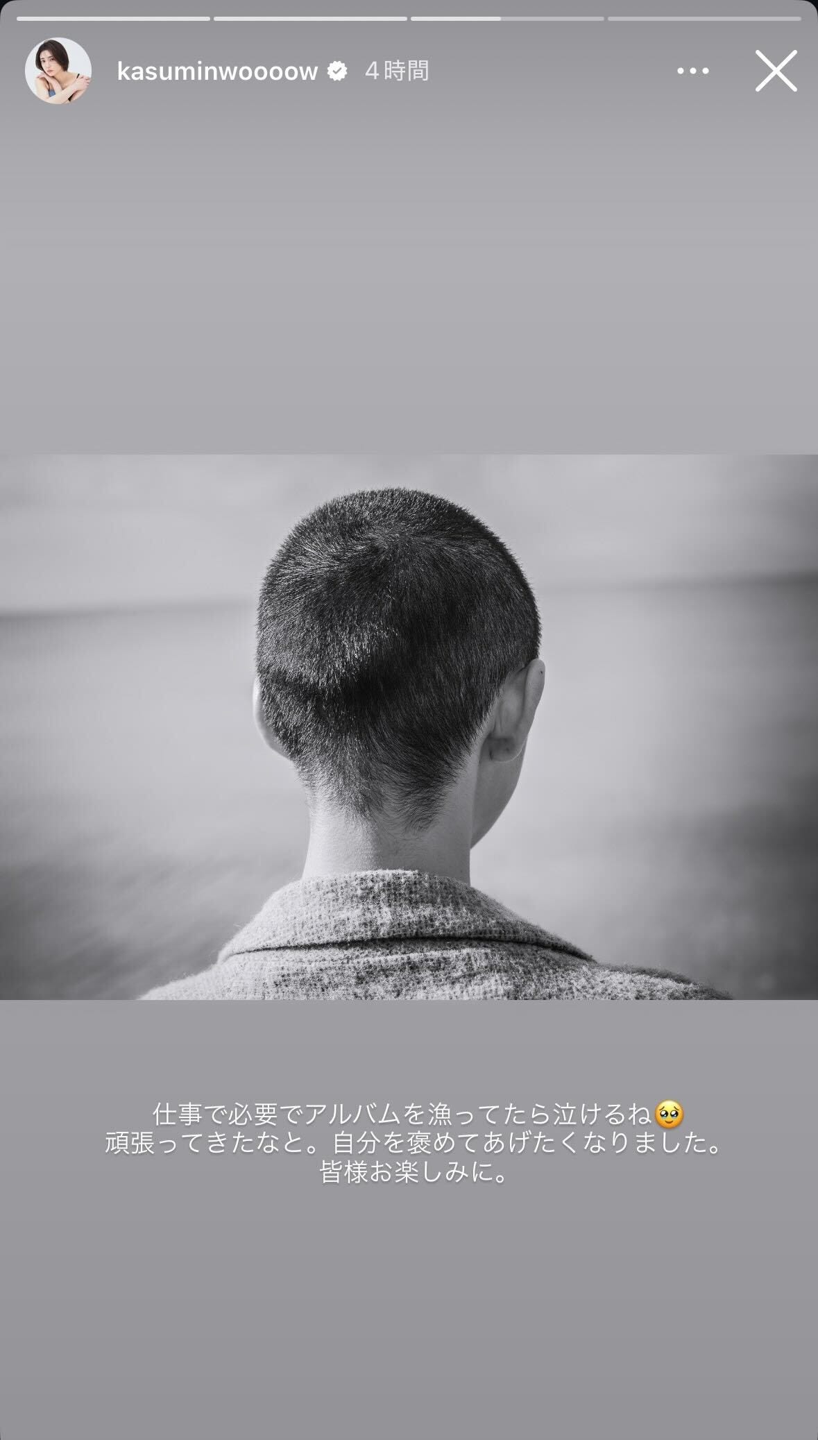 女優の山谷花純が2026年4月3日、自身のInstagramストーリーズを更新。丸刈りショットを披露...