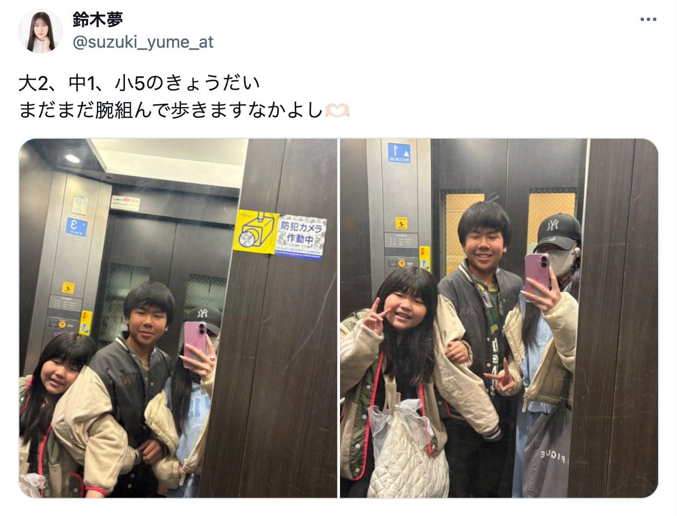 俳優・鈴木福の妹でタレントの鈴木夢が4月6日、自身のX(旧Twitter)を更新。弟で子役の楽(たの...