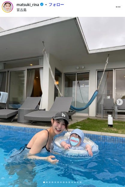 コットンきょんの“産後5ヶ月”美人妻、水着姿でプール満喫「体型変わってなくて凄い」「スタイル抜群」の声