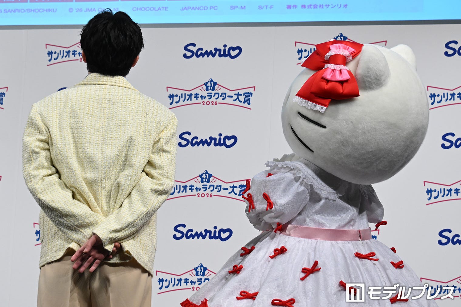 46. スクリーンを見ながら談笑する吉田仁人、ハローキティ②(C)モデルプレス