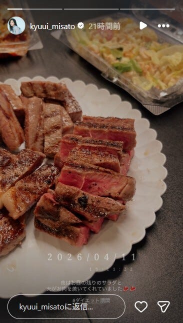 「バチェラー4」休井美郷、夫手作りのダイエットディナー公開「最高の旦那さま」「ずっとラブラブ」と反響