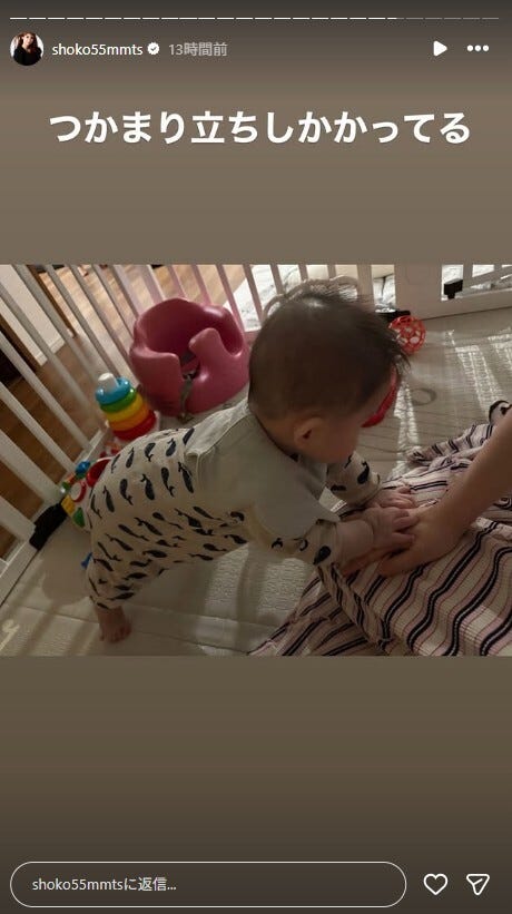 中川翔子、生後6ヶ月双子弟の“つかまり立ち”報告「感動の瞬間」「どんどん成長してる」と反響