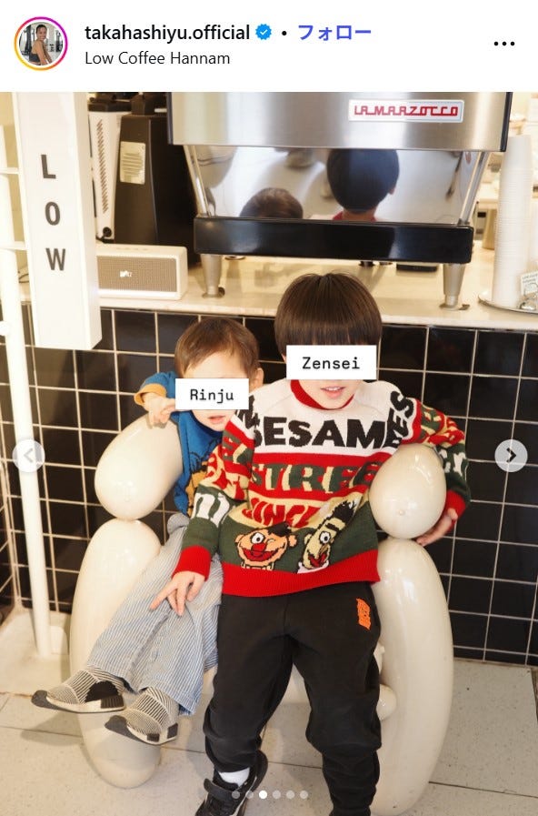 モデルの高橋ユウが4月13日、自身のInstagramを更新。韓国での息子たちのショットを公開した。