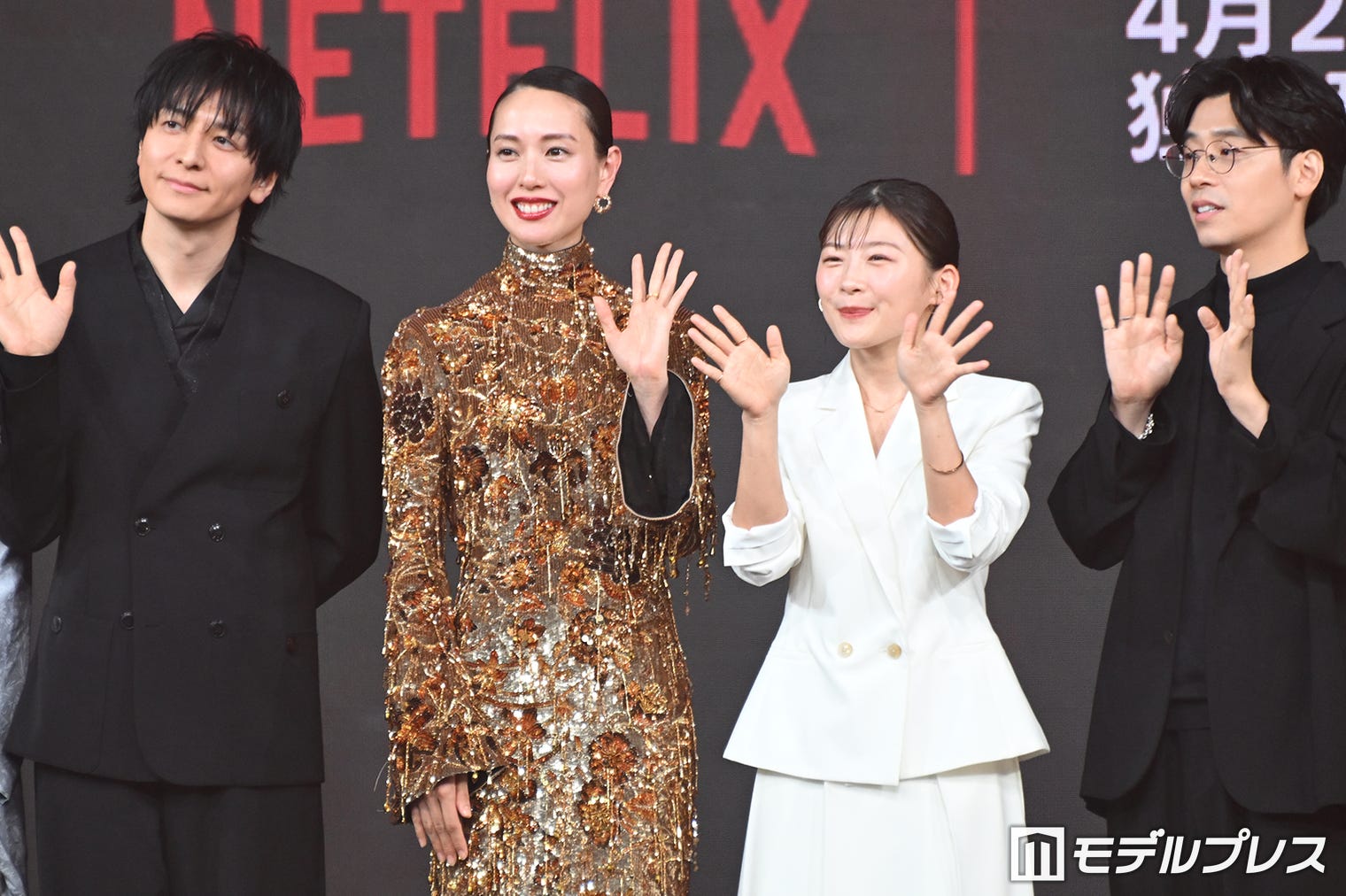 9. 観客の撮影タイムにノリノリな生田斗真(中央左)、戸田恵梨香(中央右)、三浦透子、伊藤沙莉(C)モデルプレス