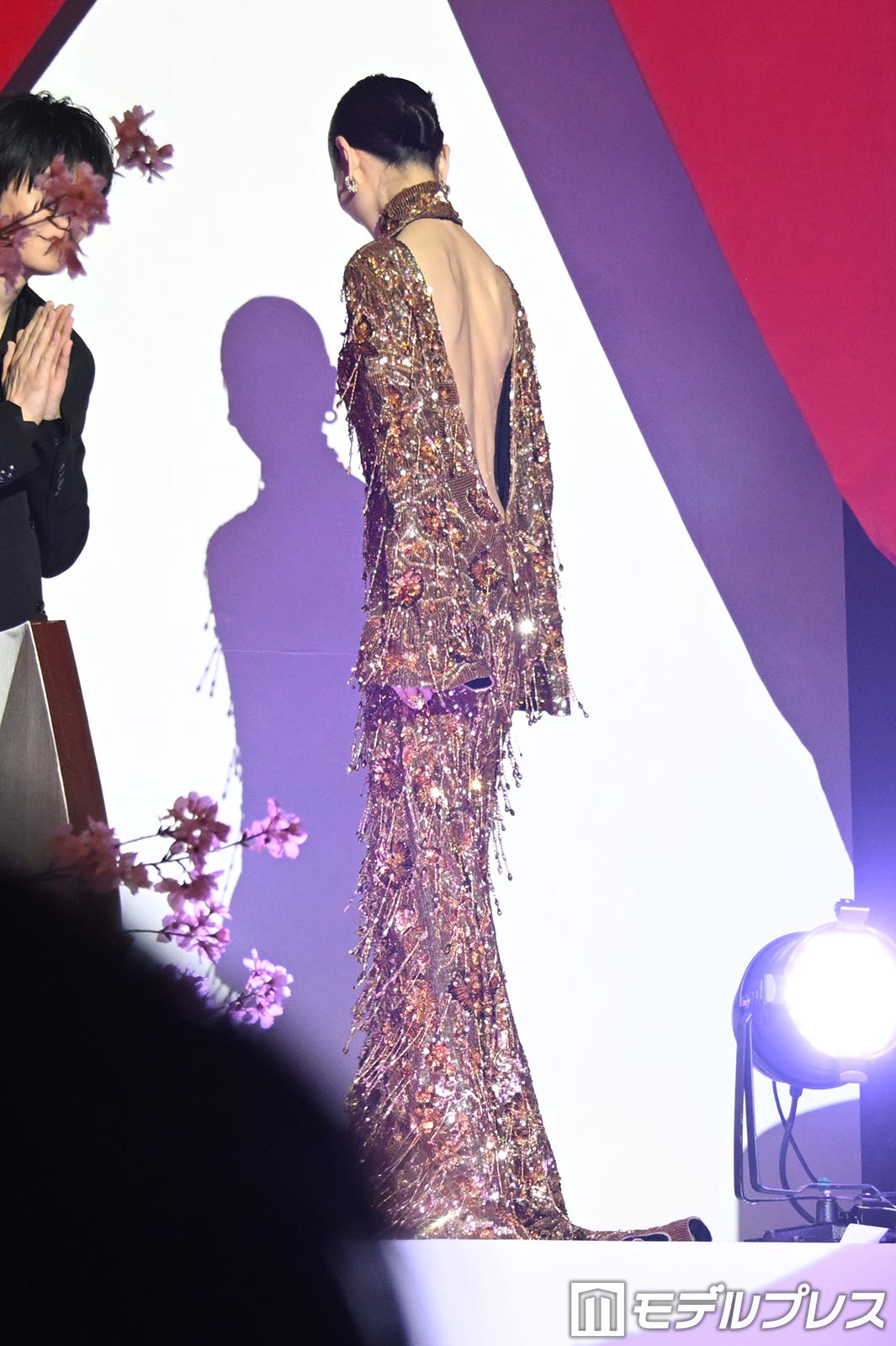 戸田恵梨香、生田斗真にエスコートされレッドカーペット降臨 美背中輝く華やかゴールドドレス姿【地獄に堕ちるわよ】