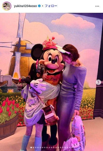 元タレントの木下優樹菜が4月14日、自身のInstagramを更新。次女と訪れた東京ディズニーリゾー...