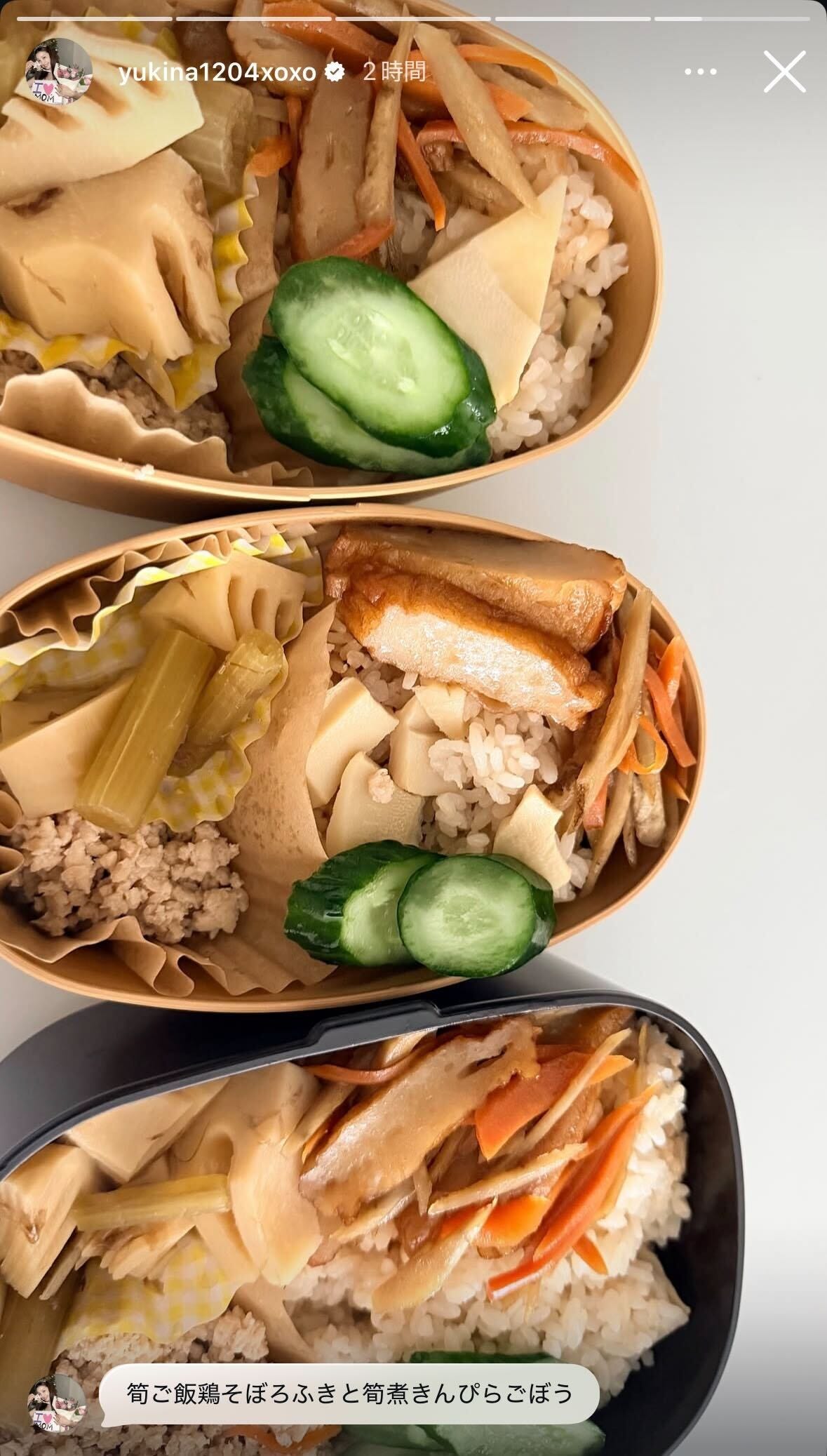 2児の母・木下優樹菜、3人分のたけのこご飯弁当公開 ふきと筍の煮物・鶏そぼろ…品数豊富なラインナップに反響「季節感あって素敵」