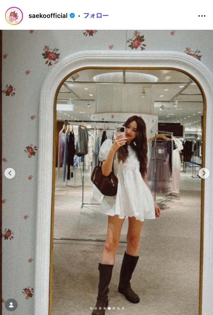 紗栄子、白ミニワンピコーデ公開「脚長すぎる」「スタイル抜群」の声