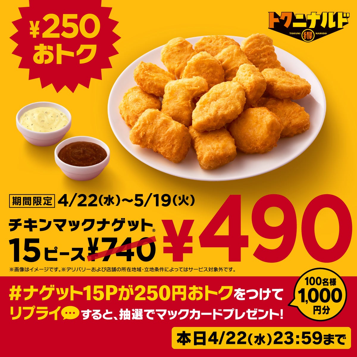 マクドナルドは『トクニナルド』キャンペーンの第3弾として、4月22日から5月19日までの4週間限定で...