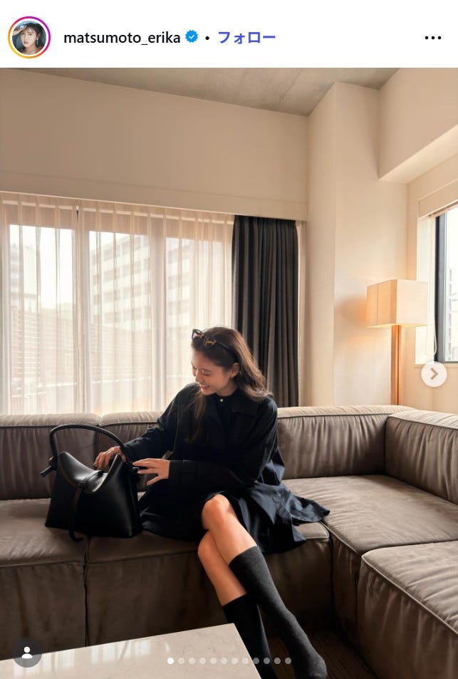 モデルの松元絵里花が4月15日、自身のInstagramを更新。モノトーンの私服コーディネートを公開...