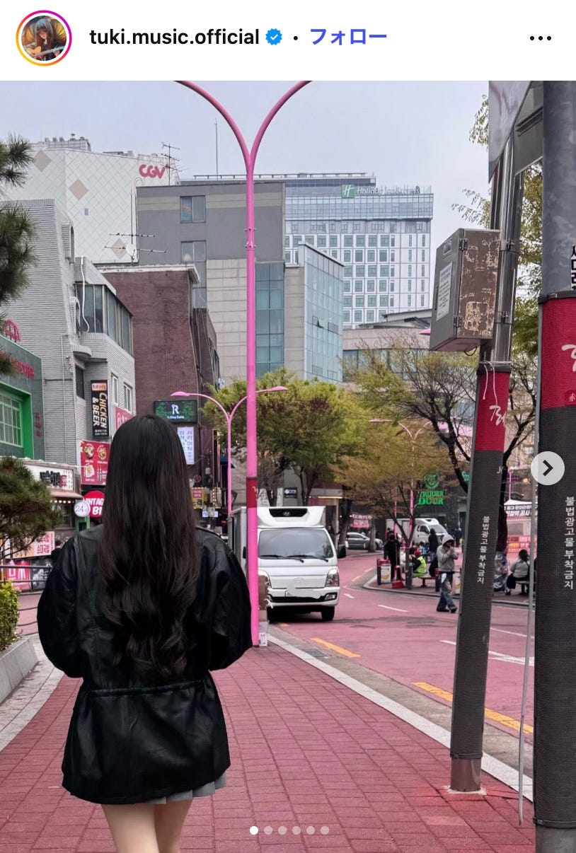 “素顔非公開”tuki.「2キロ太りました」美脚のぞく韓国満喫ショット公開「スタイル良すぎて驚き」「絵になる」の声