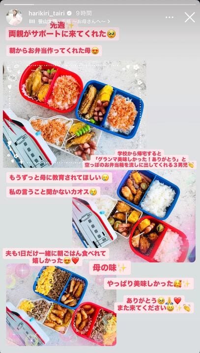 4児の母・平愛梨、母が作ってくれた息子3人×3日分の弁当公開「バリエーションすごい」「子どもたちが喜ぶの分かる」の声