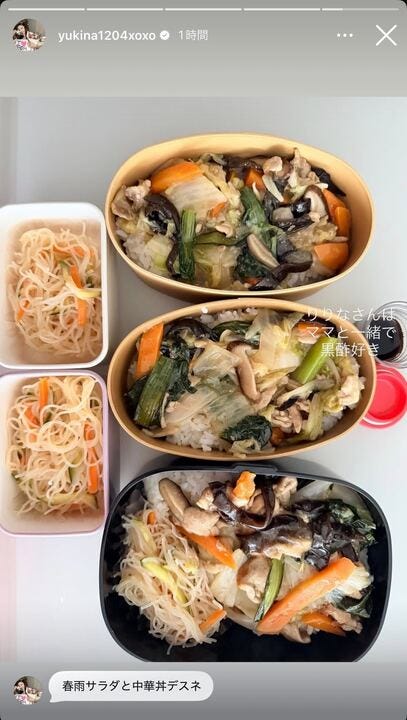 2児の母・木下優樹菜、3人分の中華丼弁当公開「彩りが綺麗で食欲そそられる」「お子さんの好みに合わせてて素敵」の声