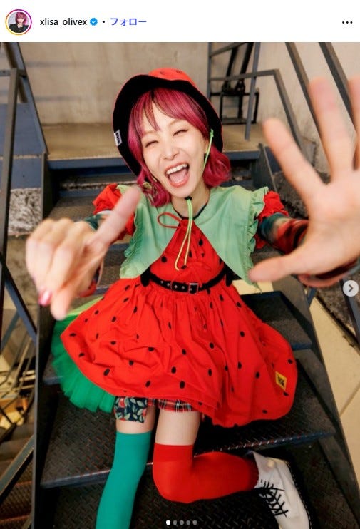 LiSA、苺モチーフのミニ丈衣装×ニーハイソックスで美脚スラリ「脚めっちゃ綺麗」「苺の妖精みたい」の声