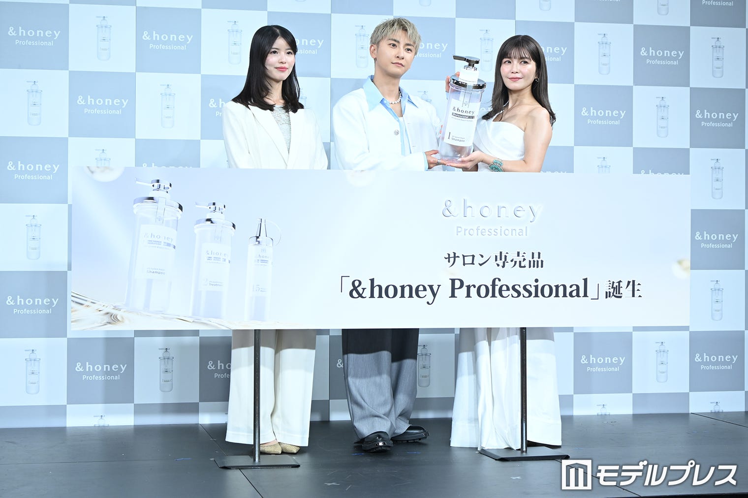 1. サロン専売品「&honey Professional」誕生記念発表会に出席した與真司郎、宇野実彩子(C)モデルプレス