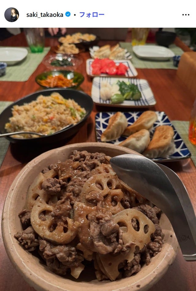 女優の高岡早紀が4月22日、自身のInstagramを更新。手作りの夕飯の食卓を公開し、話題となって...