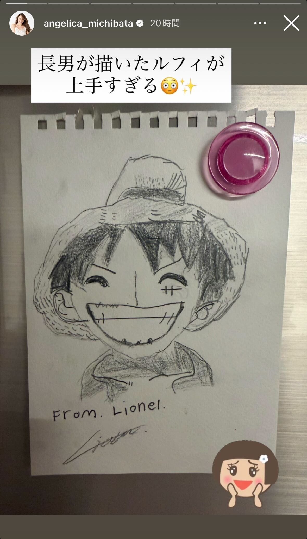 道端アンジェリカ、7歳長男が描いた“ルフィ”公開「クオリティ高すぎ」「才能の塊」と反響