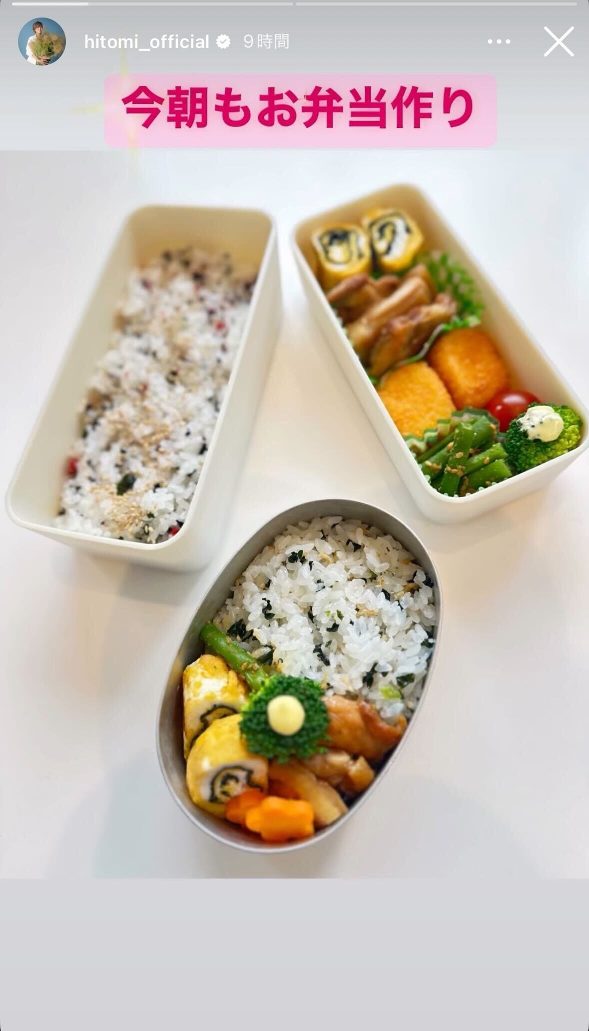 歌手のhitomiが4月23日、自身のInstagramストーリーズを更新。2つの手作り弁当を公開し...
