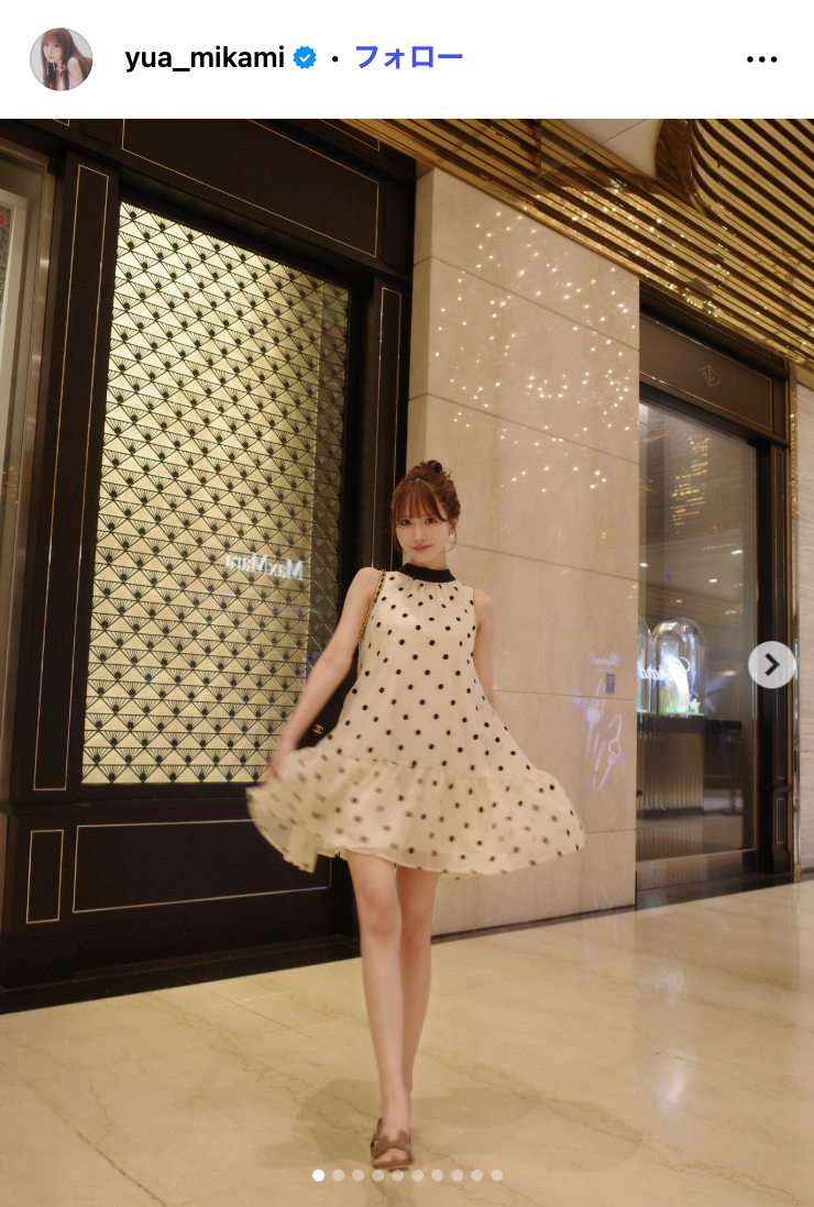 タレントの三上悠亜が4月23日、自身のInstagramを更新。ミニワンピース姿を公開した。