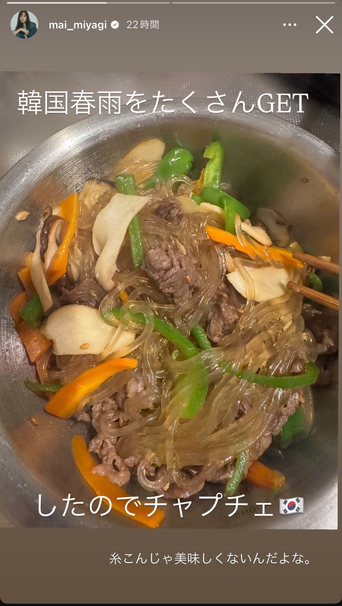 2児の母・宮城舞、韓国春雨使った本格手作りチャプチェ披露「具だくさんで美味しそう」「彩り満点」の声