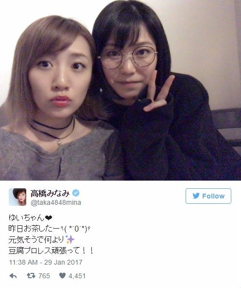 元AKB48の高橋みなみが29日、自身のTwitterにてAKB48の横山由依との2ショットを投稿。...