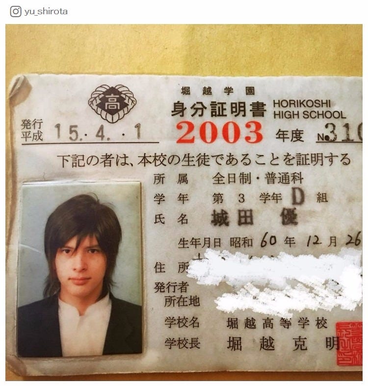 俳優の城田優が29日、自身のInstagramにて、約13年前の学生証を投稿し、反響が寄せられている...
