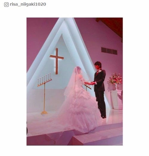 新垣里沙、ハワイ挙式を報告 純白ウェディングドレス姿で夫と2ショット