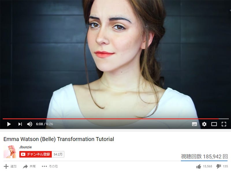 超絶メイクテクニックでディズニー映画『美女と野獣』のエマ・ワトソンに変身する米YouTuberがネッ...