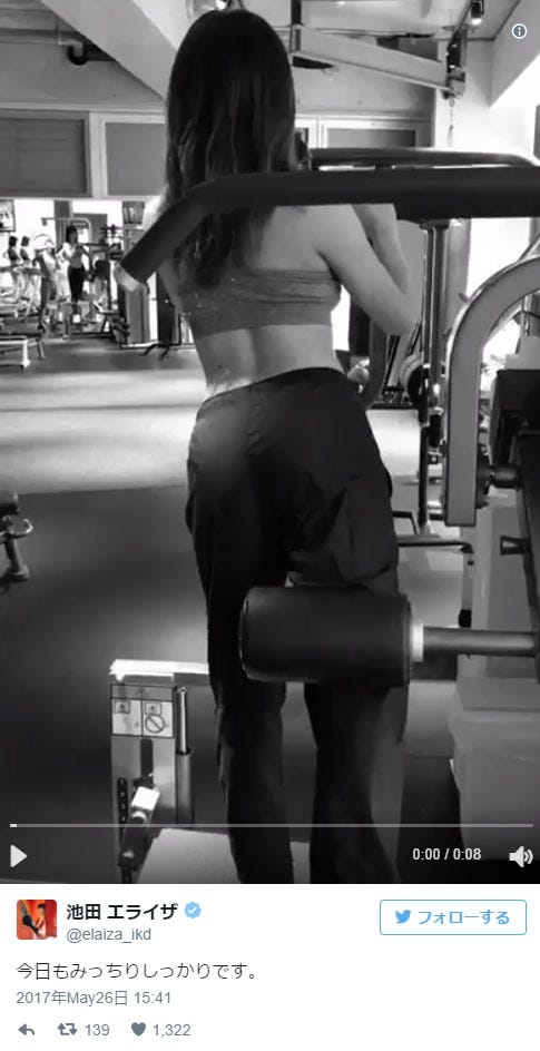 モデルで女優の池田エライザが26日、自身のTwitterでトレーニング中の動画を公開した。