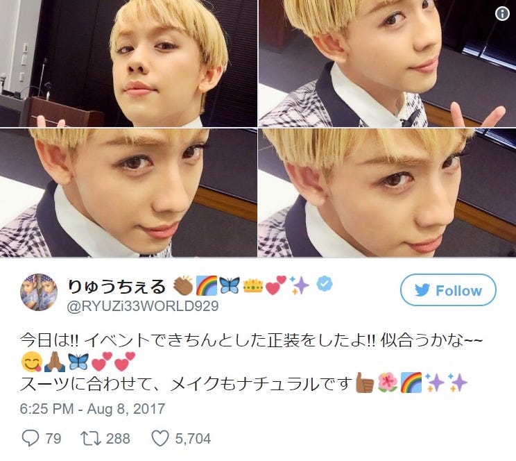ナチュラルメイクのりゅうちぇる/Twitterより