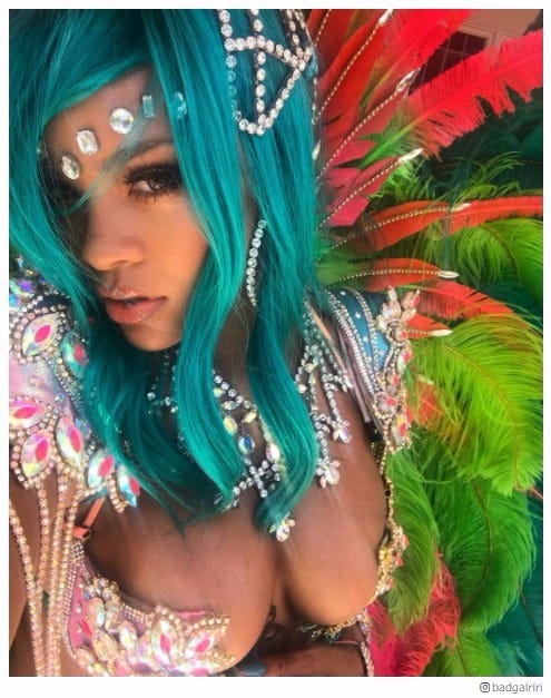 米歌手のリアーナが、Instagramにて故郷バルバドスの収穫祭での姿を披露。ド派手な衣装が話題を呼...