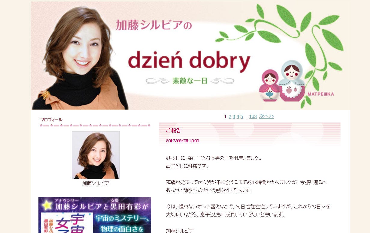 TBS加藤シルビアアナ、第1子男児出産を報告/加藤シルビアアナオフィシャルブログ(TBS)より