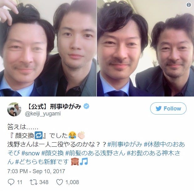 神木隆之介の“ヒゲあり”姿が新鮮 浅野忠信との顔交換に反響「最高」「可愛い」<刑事ゆがみ>