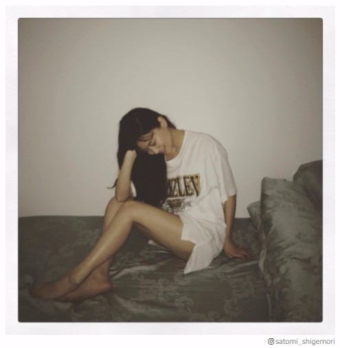 タレントの重盛さと美が12日、自身のInstagramにビックTシャツを着たショットを公開。あらわに...