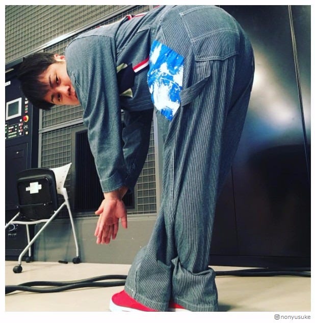 ノンスタ井上裕介“菜々緒ポーズ”に挑む 足の長さ比較が話題