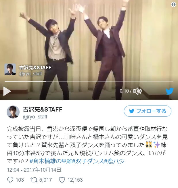 吉沢亮、賀来賢人が“双子ダンス”/吉沢亮公式Twitter