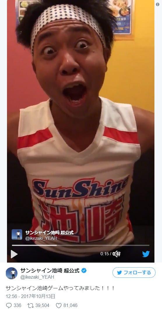 サンシャイン池崎公式Twitterより