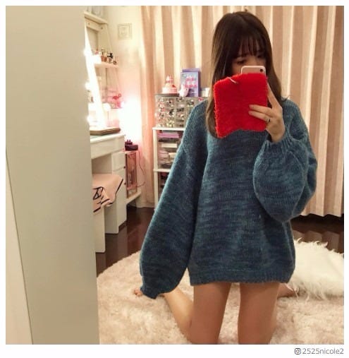 大きめニットをキュートに着こなした藤田ニコル/Instagramより
