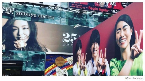 安室奈美恵が発売するアルバムの看板とイモトアヤコが出演するCMの看板/イモトアヤコInstagramより