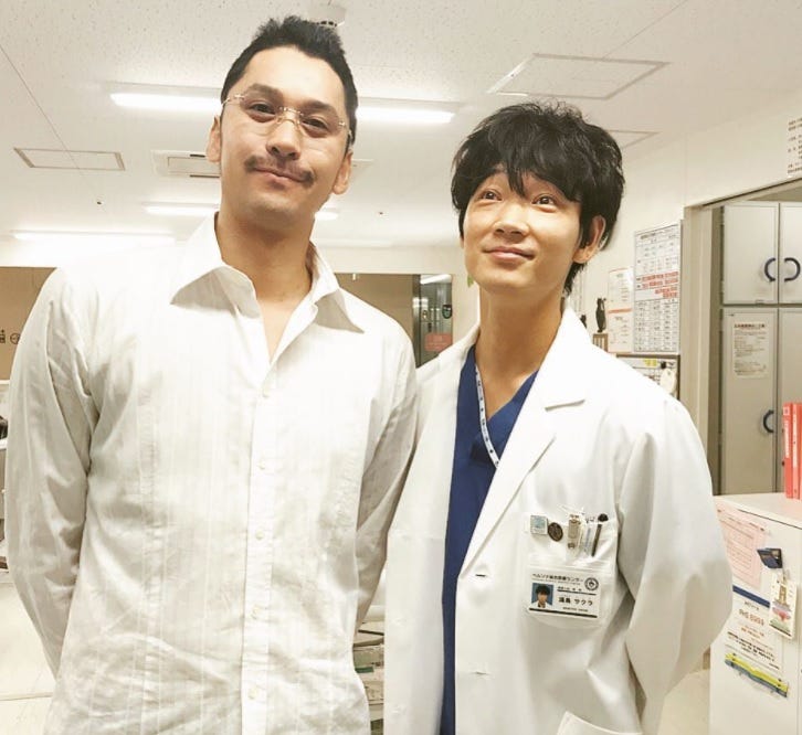 TBS系のドラマ「コウノドリ」で主演する俳優の綾野剛と、第5話にゲスト出演する俳優の深水元基が、同作...