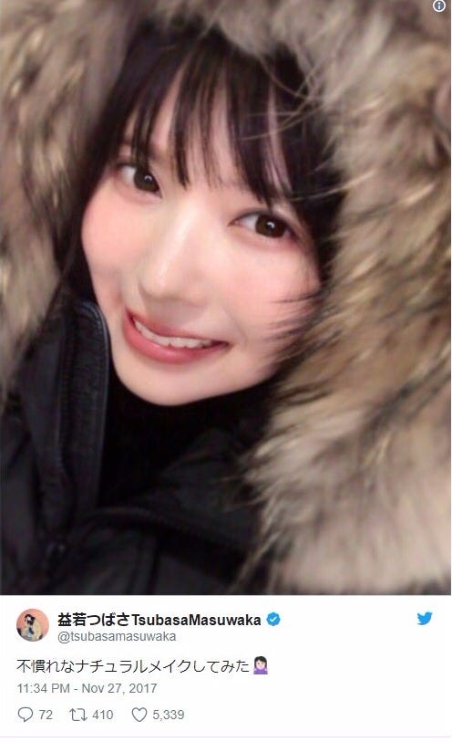 モデルの益若つばさが27日、自身のTwitterにてナチュラルメイクの姿を披露し、反響が寄せられた。