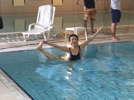 女優の釈由美子が15日、自身のオフィシャルブログを更新。美しいボディの水着姿を披露した。