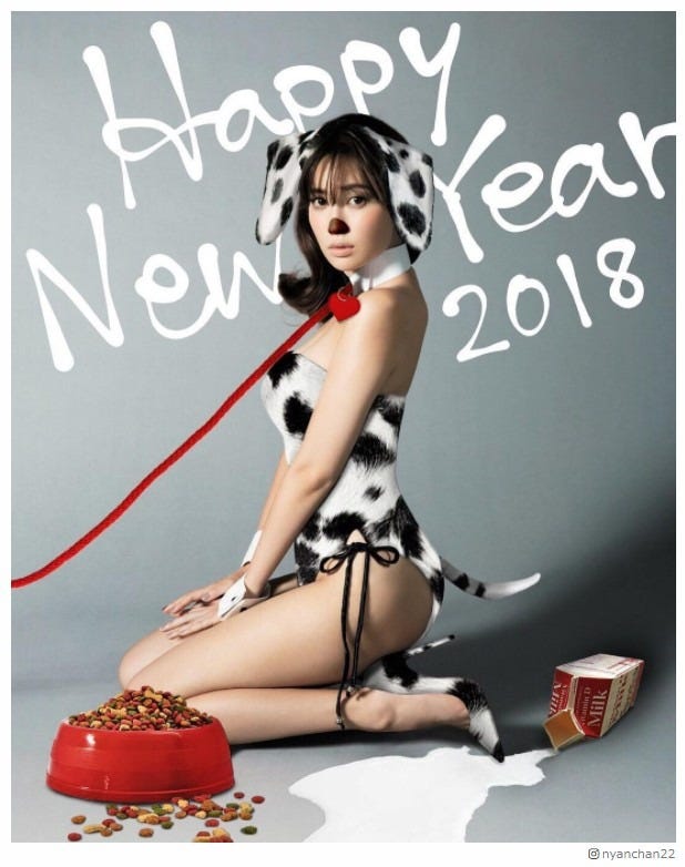 小嶋陽菜、恒例“SEXY年賀状” 2018年はワンちゃんに