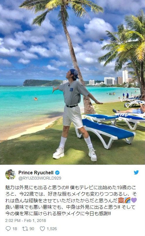 タレントのりゅうちぇるが1日、自身のTwitterにてファッション、メイクに対する思いを明かし、反響...