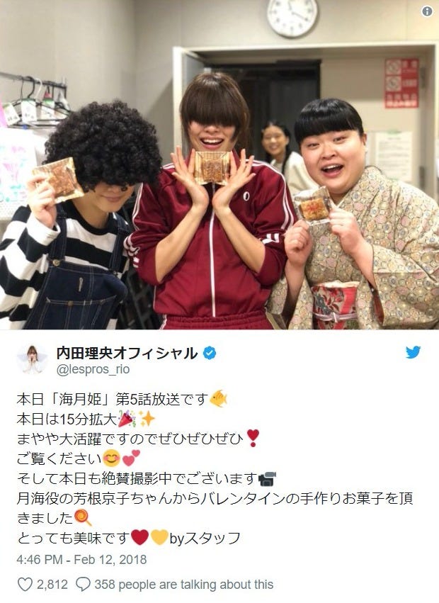 「海月姫」現場に芳根京子が“手作り”差し入れ 瀬戸康史&“尼~ず”感激