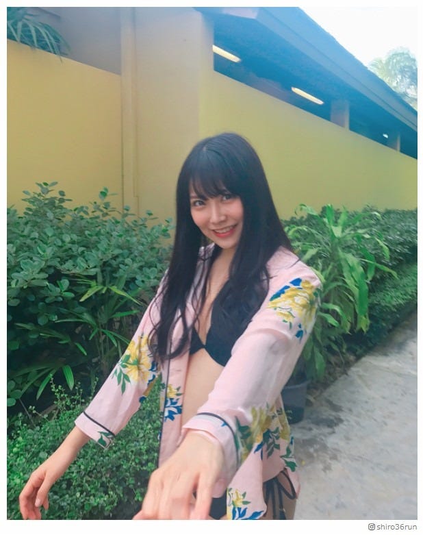 NMB48の白間美瑠が、自身のInstagramを更新。美しい谷間がのぞく水着姿での手繋ぎデート風シ...